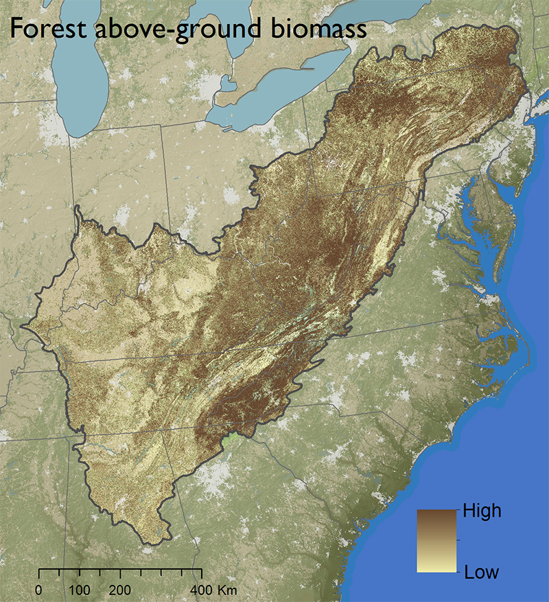 The Woods Hole Research Center’s National Biomass and Carbon Stock Dataset for the year 2000 represents an important component of carbon sequestration by Appalachian forests. The spatial distribution of this ecosystem service is influenced over time by drivers such as surface mining, urbanization, climate change,