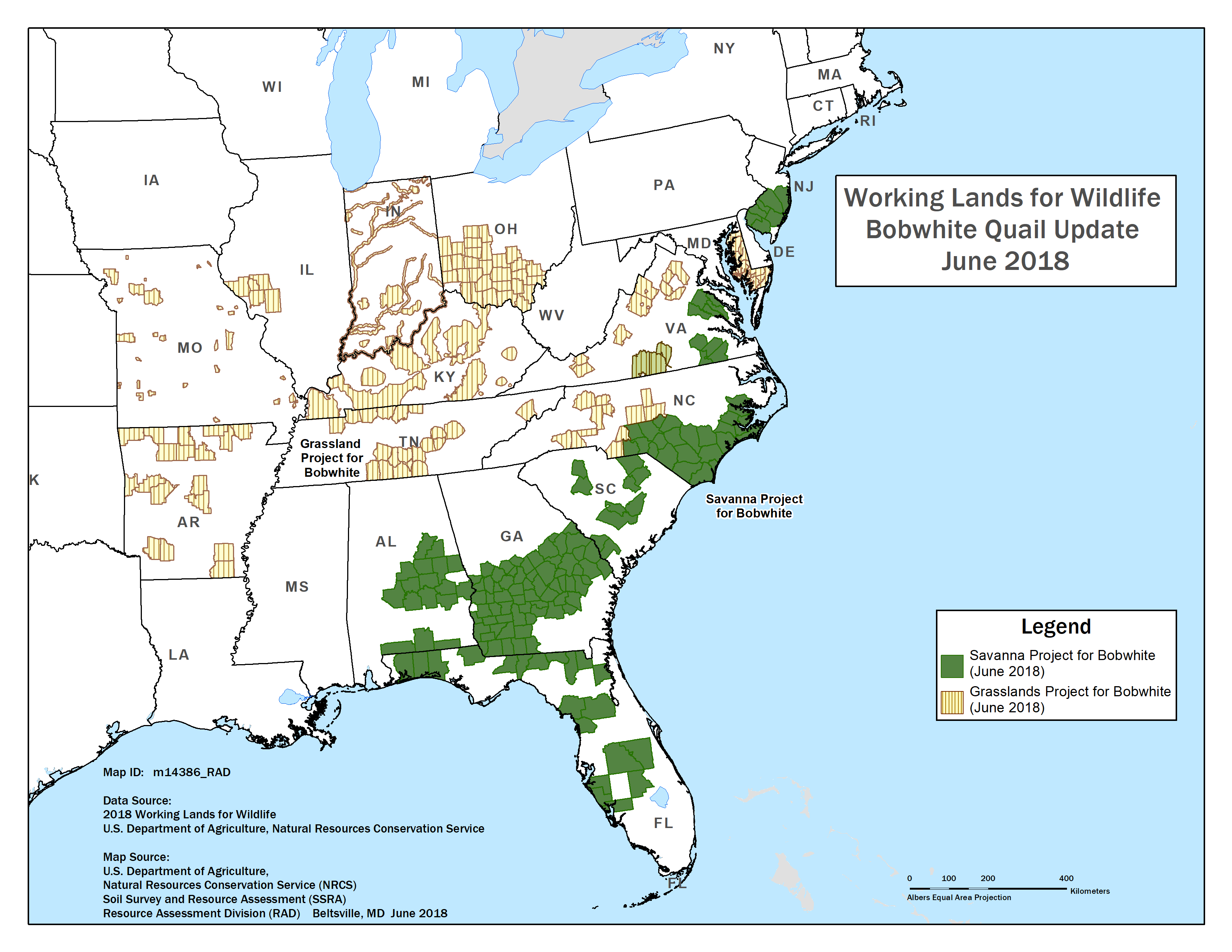 WLFW Northern bobwhite, Grasslands, and Savannas National Map