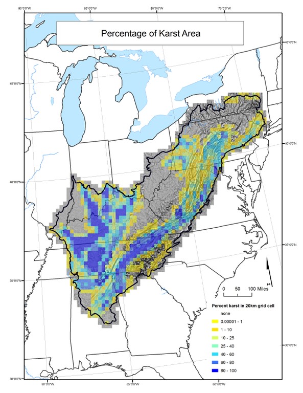 Overview maps for the Classification and Mapping of Cave and Karst Resources within the Appalachian region.