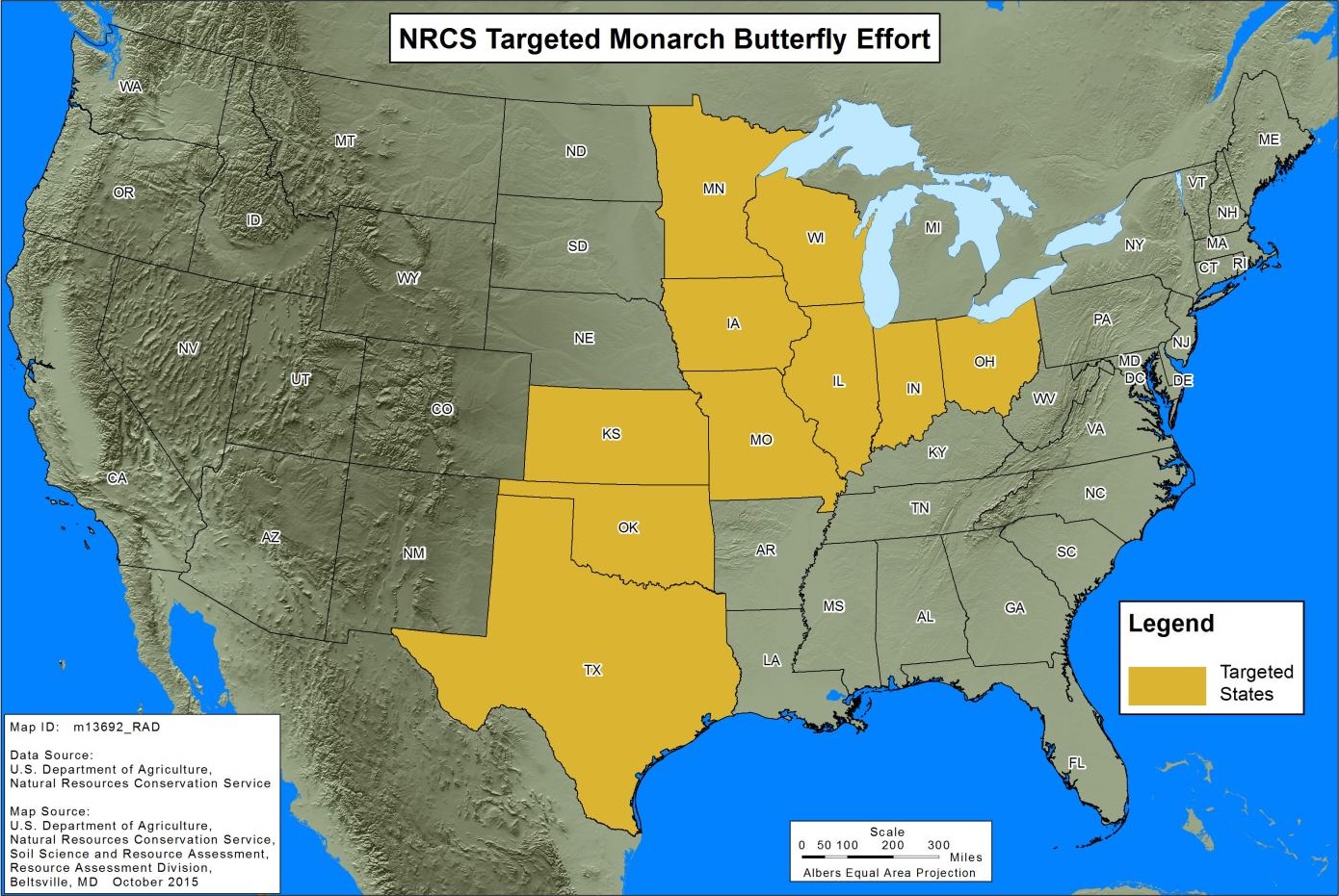 NRCS map of the targeted Monarch Butterfly effort: click to expand