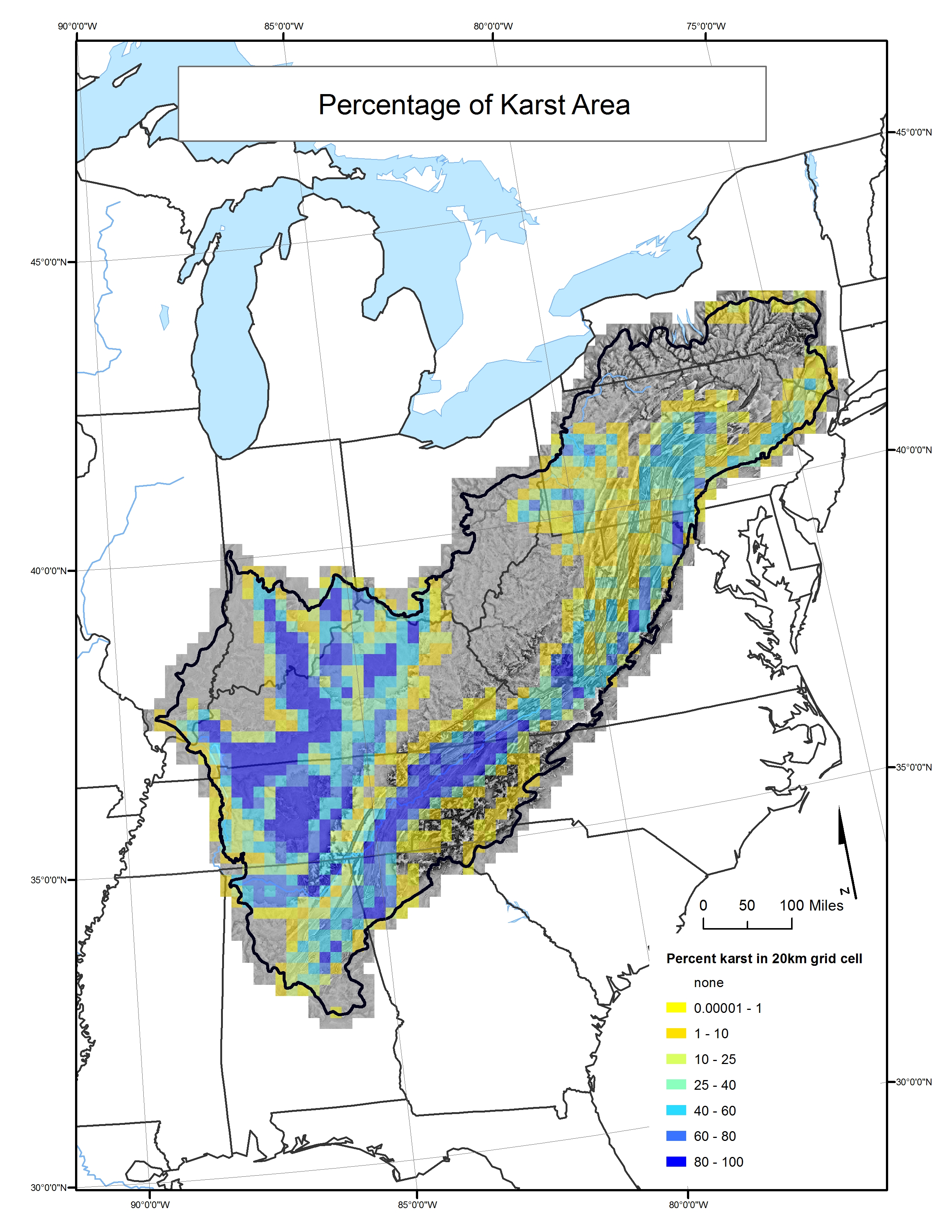 Percentage of Karst Area within Grid Cell