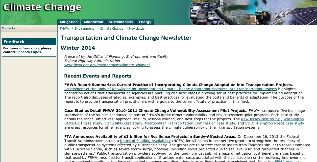 FHWA Sustainable Transportation and Climate Change Newsletter