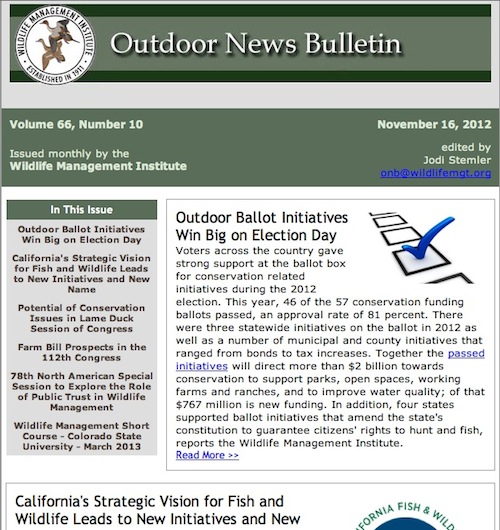 You are here: Home / Resources / General Resources Holdings / Images / Newsletter Images / WMI: Outdoor News Bulletin